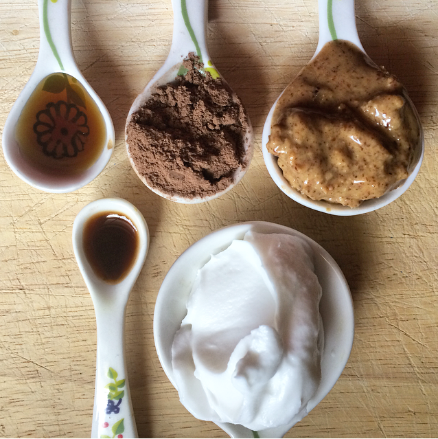 Directions: Whip together the almond butter, coconut cream, maple syrup and vanilla until smooth. Add the Cocoa powder last for easier incorporating, or mix it all together from the get go if you are impatient like me.